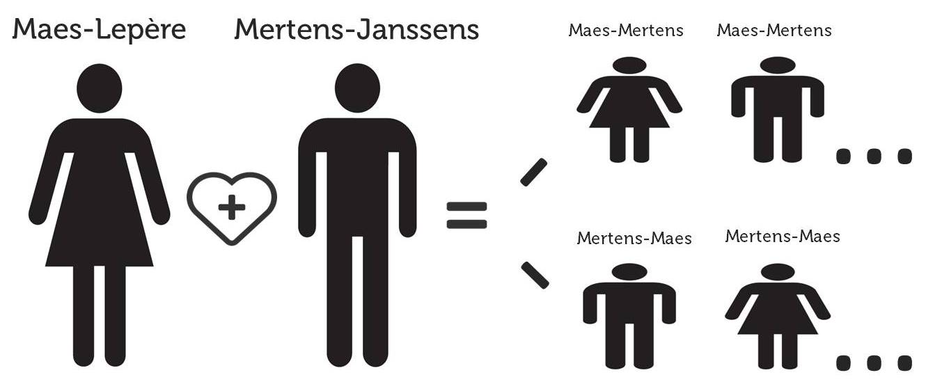 Uiteraard komt na de eerste generatie dubbelenamenkinderen een tweede generatie. En jammer maar helaas, dan moet er een naam sneuvelen (we hebben immers consideratie voor de ambtenaren van de Dienst Bevolking, en de ruimte op de identiteitskaarten is beperkt). Heel arbitrair laten we dan de tweede naam vervallen. We laten de ouders dus niet kiezen welke naam vervalt, dat heeft de natuur al in hun plaats gedaan (meerbepaald: toen de grootouders van het nieuwe kind hun eerste baby kregen).